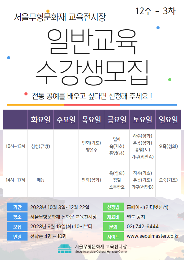[서울무형유산교육전시장] 2025년 3차 일반교육(12주) 모집안내