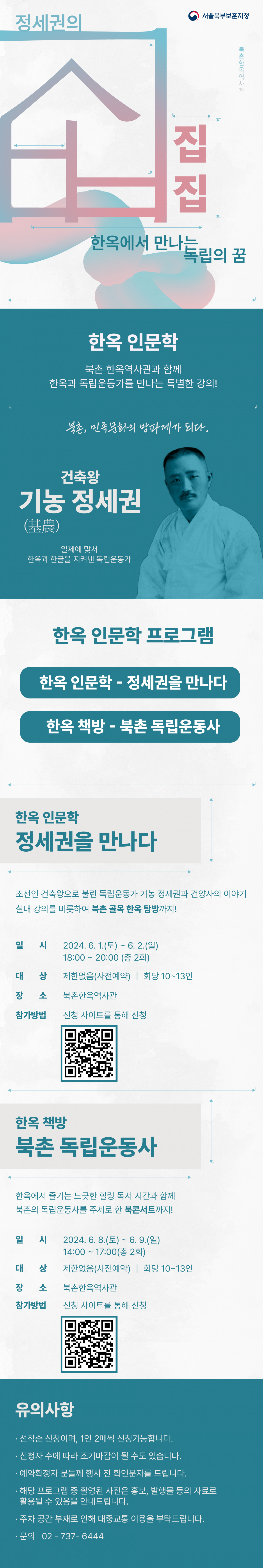 2024년 5월, 6월 서울북부보훈지청에서 주관하는 '정세권의 집, 한옥에서 만나는 독립의 꿈'행사가