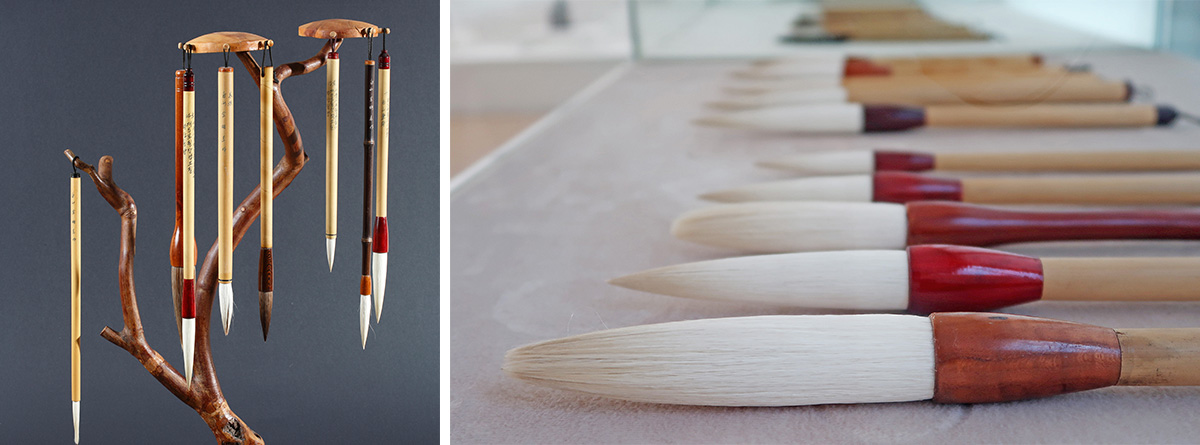 털의 재료로는 양 · 여우 · 토끼 · 호랑이 · 사슴 · 이리 · 개 · 말 · 산돼지 · 족제비 등의 털이 사용되며, 붓의 대는 대나무를 많이 사용한다.