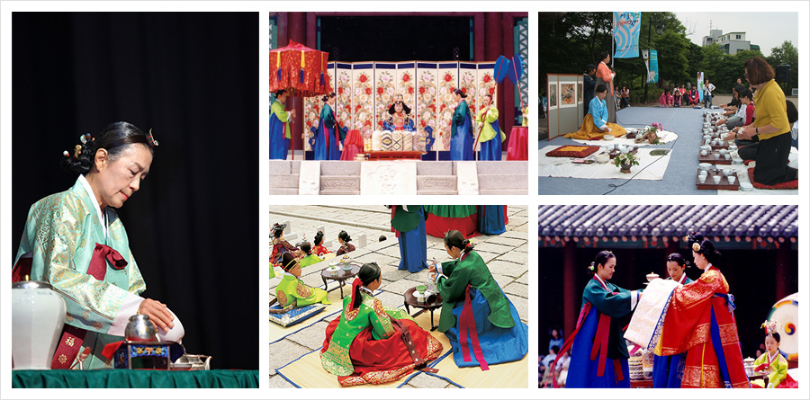 명(茗) 또는 천(荈)이라고도 쓴 차(茶)는 언제부터 마시기 시작했는지 정확히 알 수 없으나 『삼국사기』에 ‘차는 선덕여왕 때부터 있었다.'라고 한 기록으로 보아 적어도 7세기에는 차를 마셨음을 알 수 있다. 또한 『삼국유사』에 ”661년 신라 문무왕 때 다례를 지내는 음식으로서 떡 · 과일 등과 함께 차가 놓여졌다.”라는 기록으로 보아 기호음료로 마셨음을 알 수 있다. 고려시대에는 태후나 태자의 책봉, 원자의 탄생 축하, 태자의 생일 축하 의례 때에 차를 올렸으며 공주가 시집갈 때도 차를 베풀었다는 기록이 『고려사』에 보인다. 조선시대 왕실의 다례는 ‘화강다례(會講茶禮)’와 ‘사신맞이 다례’가 있었다. 화강이란 왕세자가 스승과 시강원의 정 1품 관리와 빈객을 모아 놓고 경서(經書)와 사기(史記)를 강론하던 일로서, 이때 다례를 행한 기록이 『세종실록』에 보인다. 사신맞이 다례는 태평관 · 사정전 · 인정전 · 명륜당 등에서 왕이나 왕자가 중국 사신에게 차를 대접하는 의례를 행한 것으로서 고종 때 까지 빈번하게 행해졌다.