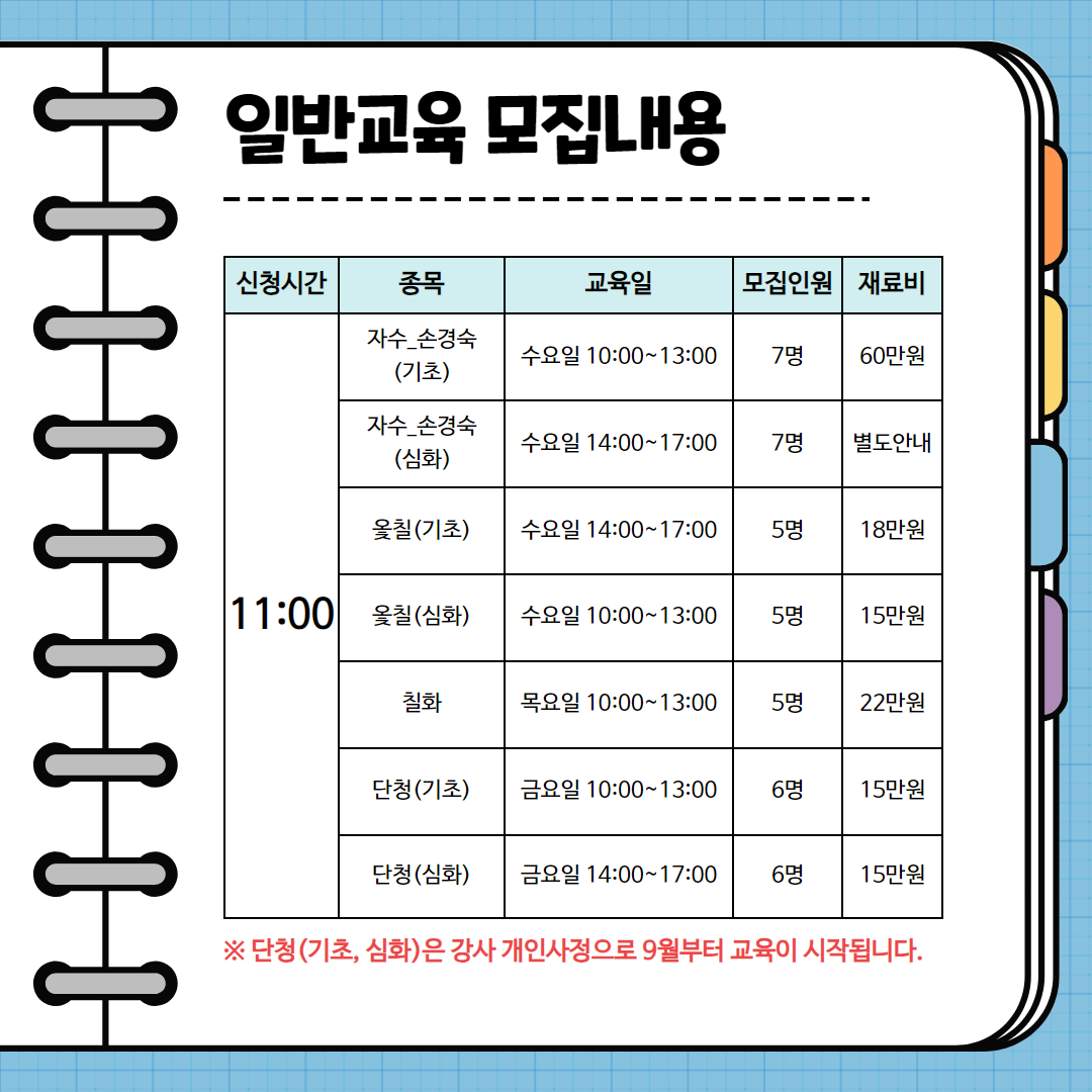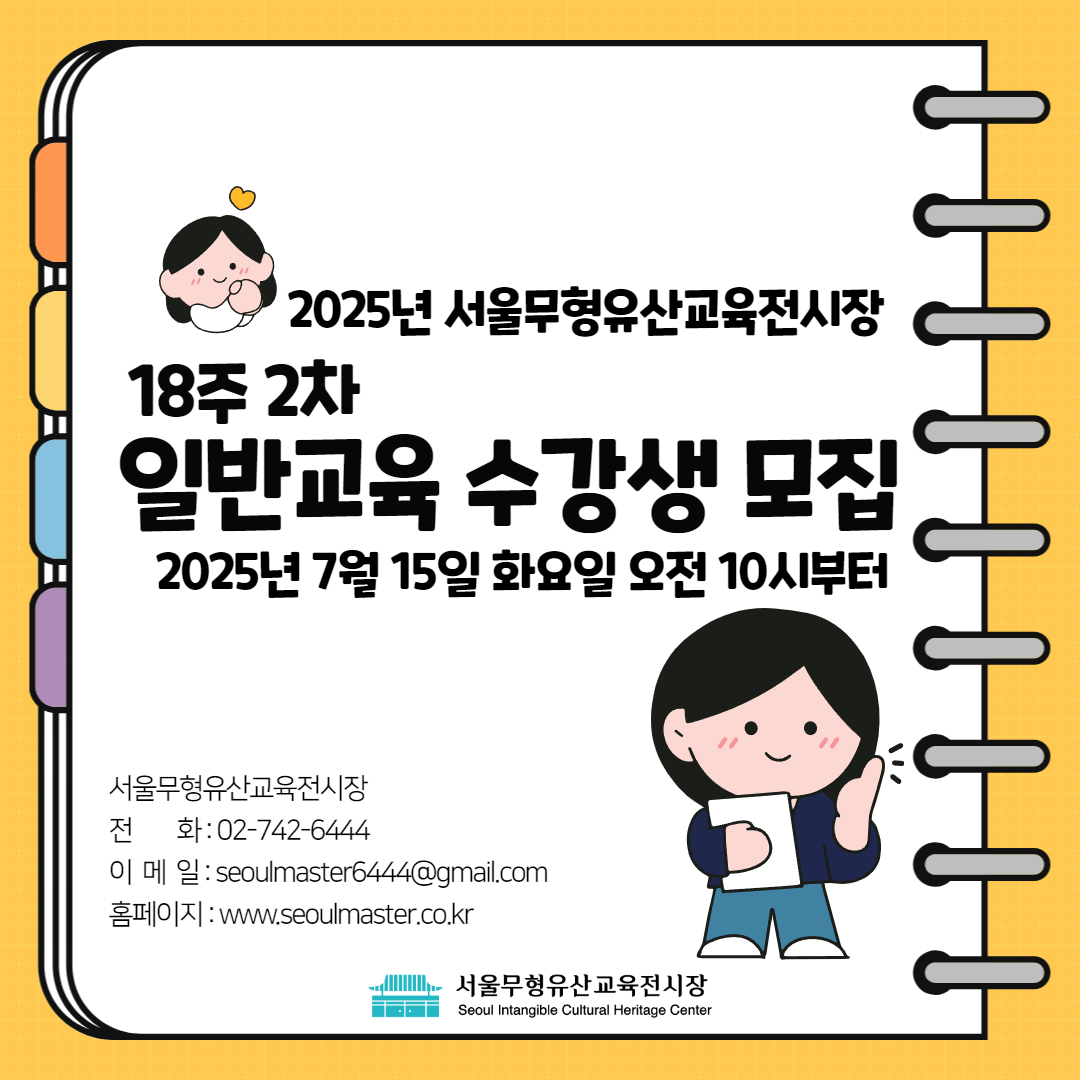 [서울무형유산교육전시장] 2025년 2차 18주 일반교육 모집 안내