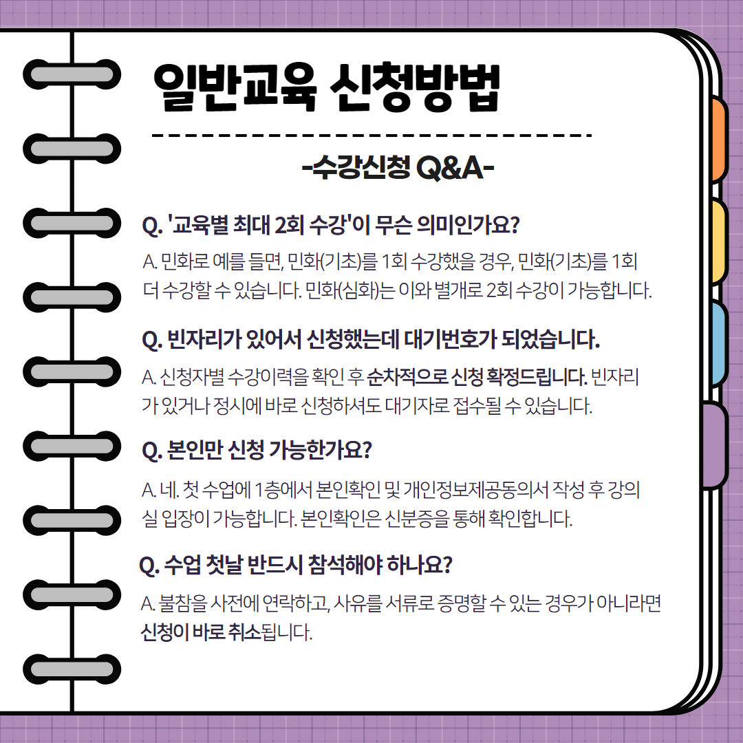 ※ 2회 이상 수강자에 관한 내용이 2025년 7월 1일(화)부터 변경되었습니다.(자세한 내용은 공지사항을 확인 바랍니다.)