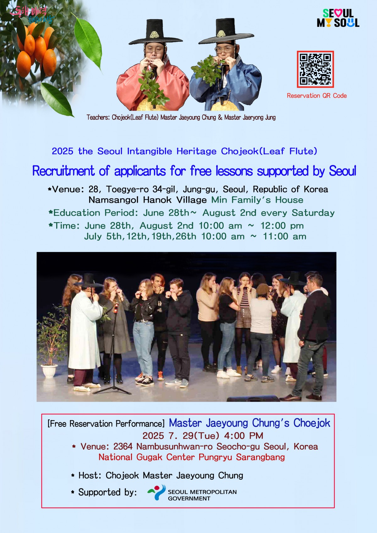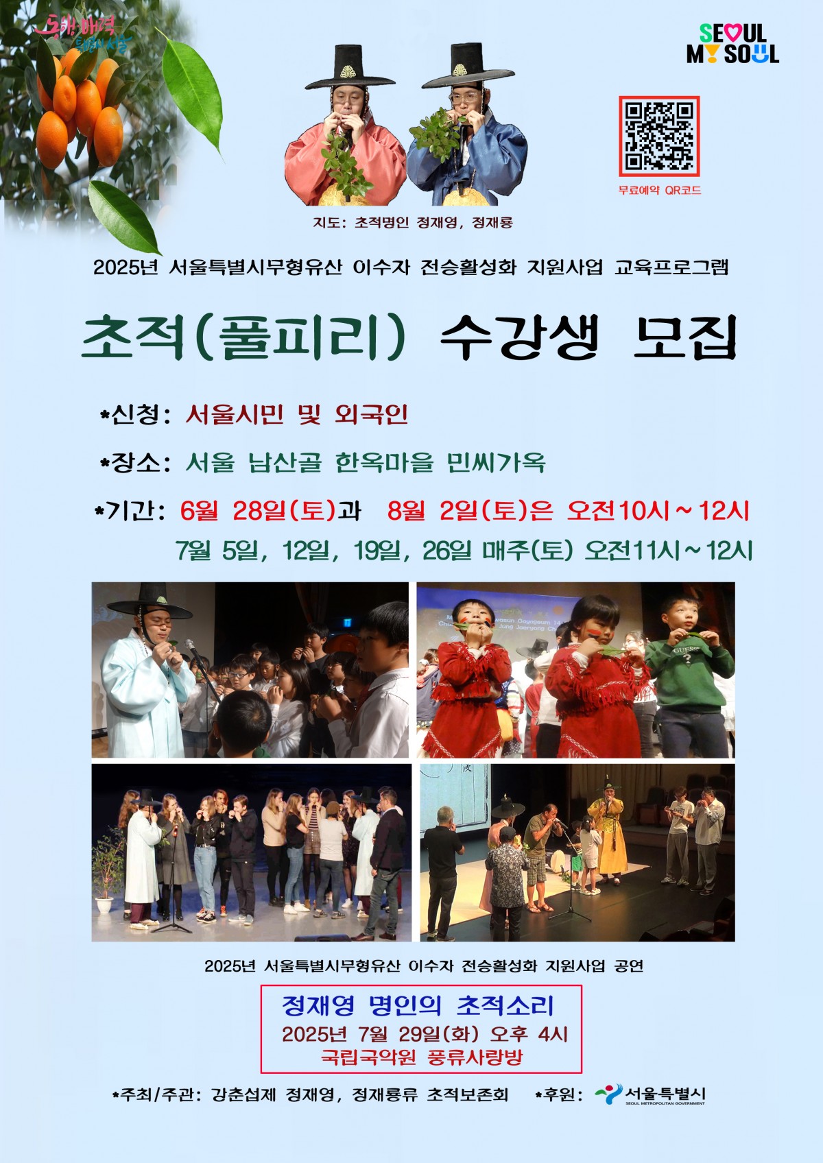 [서울특별시, 정재영 정재룡류 초적보존회] 초적(풀피리) 수강생 모집