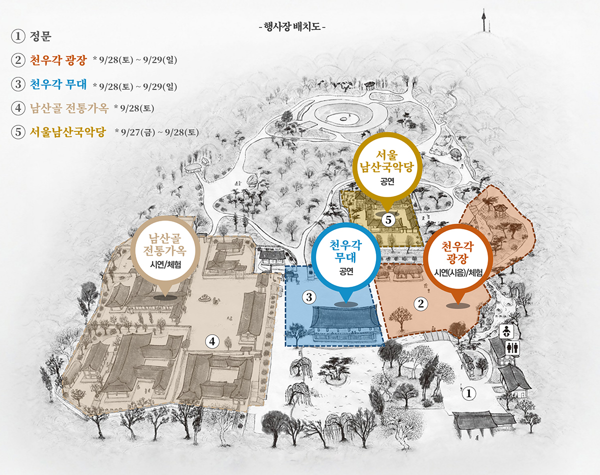 식전공연 송파다리밟기 개막식 보유자공연 판소리(흥보가) 재담소리 판소리(수궁가) 마들농요 이수자 공연 삼현육각 살풀이춤 판소리(흥보가) 한량무 재담소리 수표교다리밟기 송서 시조 |