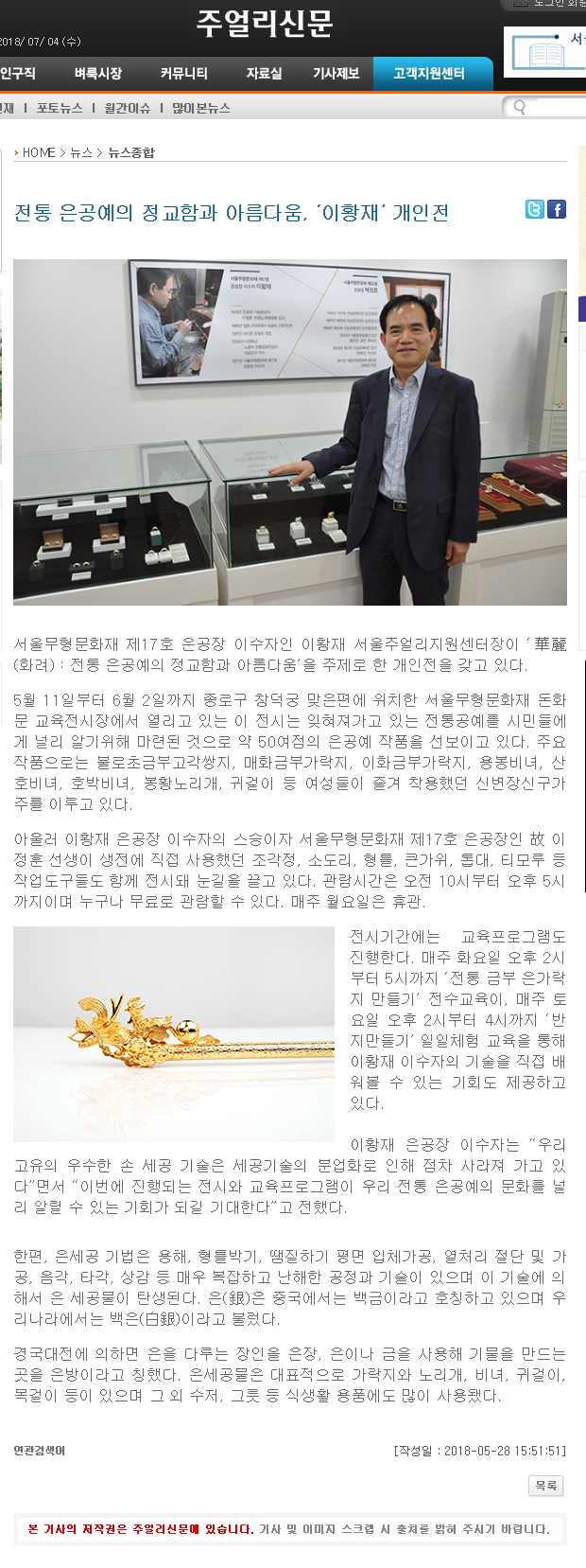 [주얼리신문] 전통 은공예의 정교함과 아름다움, ‘이황재’ 개인전