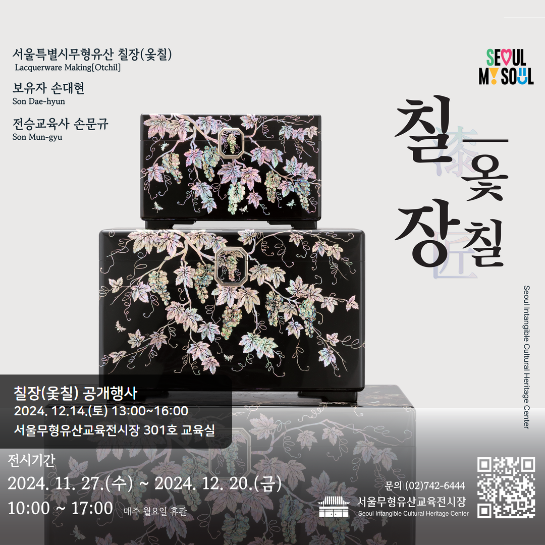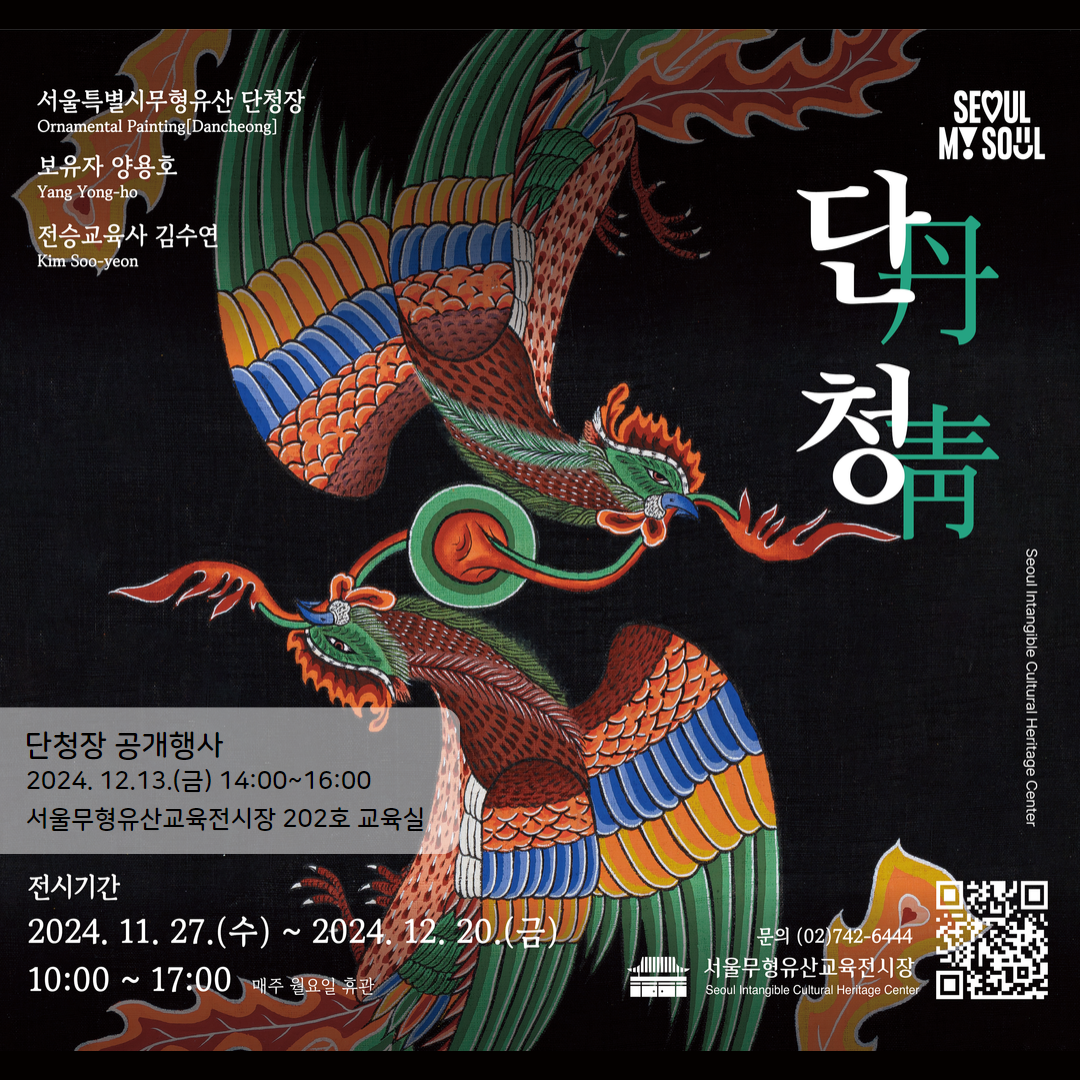 [서울무형유산교육전시장] 2024년 단청, 옻칠 전시안내(11/27~12/20) 페이지 정보 작성자 서울무형유산교육전시장 작성일24-12-13 09:48 조회4,760회 댓글0건 관련링크 이전글 다음글 목록 본문 서울무형유산교육전시장에서 2024년 11월 27일(수)부터 12월 20일(금)까지서울무형유산 단청장 양용호 보유자, 김수연 전승교육사와 서울무형유산 칠장(옻칠) 손대현 보유자, 손문규 전승교육사 전시가 진행됩니다.12월 13일에는 단청장 공개행사, 14일에는 칠장(옻칠) 공개행사도 진행되니많은 관심 바랍니다~^^ 댓글목록 등록된 댓글이 없습니다. 이전글 다음글 목록