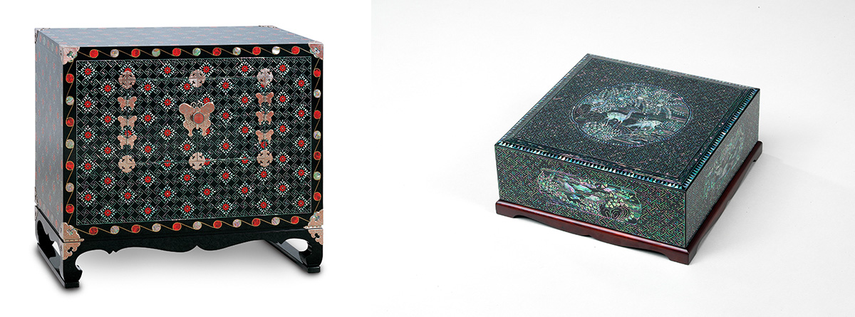 제작과정을 보면 나무로 기본 틀인 백골을 만들어 표면을 사포로 문질러 고르게 한 다음, 백골의 틈을 메우기 위해 칠죽을 발라 자개를 백골에 붙인다. 그 후 연마 · 옻칠 · 광내기 과정을 거쳐 완성된다. 무늬를 만드는 방법에는 자개를 실처럼 잘게 자른 상사를 백골에 붙여 기하학적인 문양을 만들어내는 끊음질과 자개를 실톱이나 줄로 갈아서 국화 · 거북이 등의 모양을 만들어 백골에 붙이는 줄음질이 있다. 고려시대와 조선 전기에는 모란 · 국화 · 연화 등의 식물무늬가 대부분이었으며 조선 중기에는 화조 · 쌍학 · 포도 · 매화 그리고 사군자 등의 무늬가 대부분이었다. 최근에는 전통공예에 대한 관심이 높아지면서 생활공예품으로 조금씩 소생하고 있다.