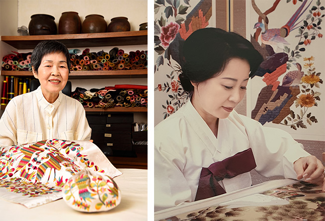 자수는 바늘을 사용하여 직물 위에 오색실로 무늬를 놓는 작업으로, 자수를 놓는 기술과 기능을 가진 사람을 자수장이라고 한다.