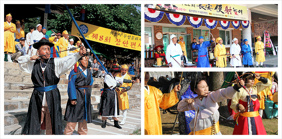 편사놀이는 편을 짜서 활쏘기를 하는 놀이로 터편사 · 골편사 · 장안편사 · 사랑편사 · 한량편사 등이 있었으며, 각각 갑 · 을 · 병 3등급으로 나누어 경기를 했다. 이 중 장안편사놀이는 도성 안이 한편이 되고 변두리 몇 개의 활터가 한편이 되어 경기를 하는데, 놀이 때 활을 쏘는 사람 뒤에서 두세명이 병창을 하며 활 쏘는 사람들의 흥취를 돋군다.