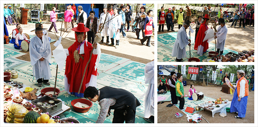 매년 삼짇날 ‘황토물림 · 산신제 · 부정 및 가망 청배 · 산맞이 · 천궁맞이 · 장군거리 · 제석청배 · 작두거리 · 제석거리 · 사냥놀이 · 산신군웅거리 · 소지 · 산신배웅 · 성주거리 · 창부거리 · 계면거리 · 뒷전거리’ 순으로 진행된다.
